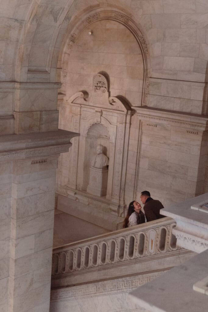 Photographing couples in New York City will always feel like magic to me. Between the historic buildings, busy streets, skyscrapers, and cultures, there’s texture everywhere. Locations like the New York Public Library and Grand Central Terminal are incredible for engagement and couples photography, but the real key is patience, awareness, and learning how to let the environment become part of the story instead of fighting it.